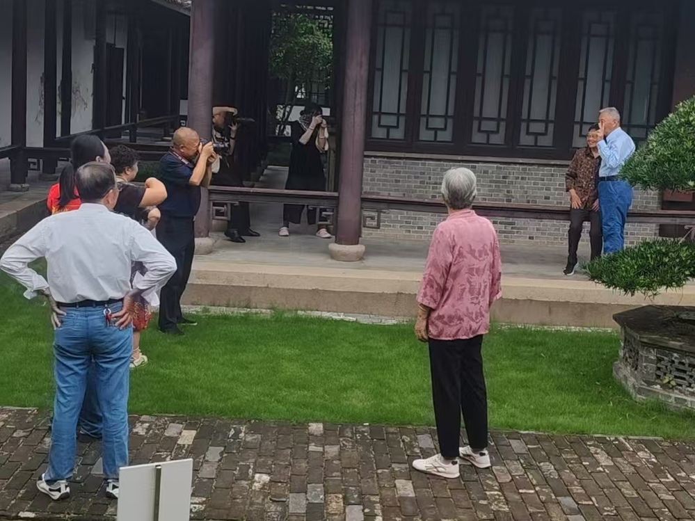 金秋送爽,丹桂飘香。在重阳节即将来临之际,如皋校区迎来5对金婚夫妇前来拍摄纪念照。老人们在百年古树前选景、牵手微笑,摄影师忙着捕捉他们自然互动的瞬间。
