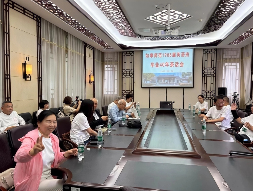 届英语班校友,大家欢聚一堂,叙师生情谊。