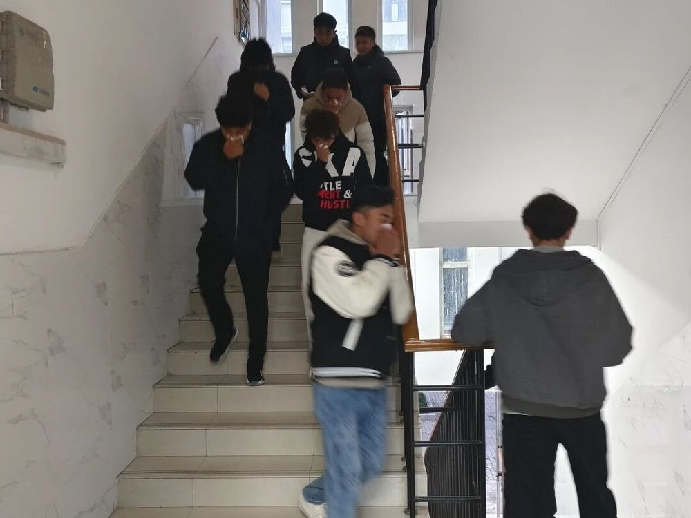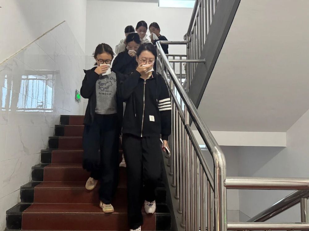 早晨6点40分,消防预警信号准时发出,演练正式开始。警报响起后,学生迅速捂住口鼻,弯腰低姿,保持间距,迅速撤离至安全区域。楼道内引导人员实时疏导,避免拥挤踩踏。从警报拉响到全员安全集结完毕,仅用时7分钟。整个过程紧张高效,充分展现了师生过硬的应急处置能力。