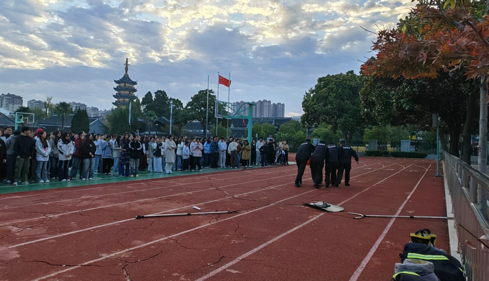 为切实提升师生应对突发安全事件的应急处置能力,筑牢平安校园防线,响应全国消防宣传月“全民消防、生命至上——安全用火用电”主题号召,2025年11月12日,校区管理办公室联合学前教育第二学院开展了消防应急疏散暨反恐防暴演练活动。