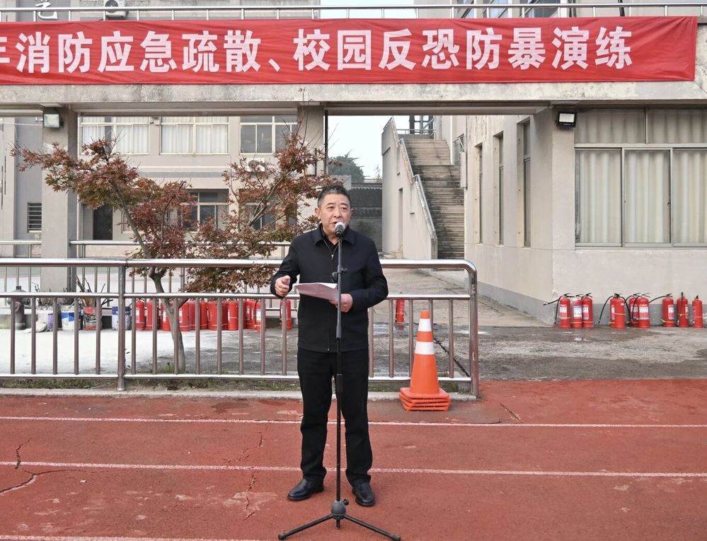 最后,演练总指挥杭斌对本次演练进行了点评。他指出,本次演练既检验了校园应急预案的实操性,又增强了全体师生的应急响应能力、协同配合能力。针对本次演练暴露出的问题,结合典型案例的深刻教训,学校将进一步压实安全责任,消除隐患盲;强化安全教育,提升应急能力;完善应急体系,筑牢协调防火墙。把应急技能练在平时,让每一位同学都能在安全的环境中成长成才!