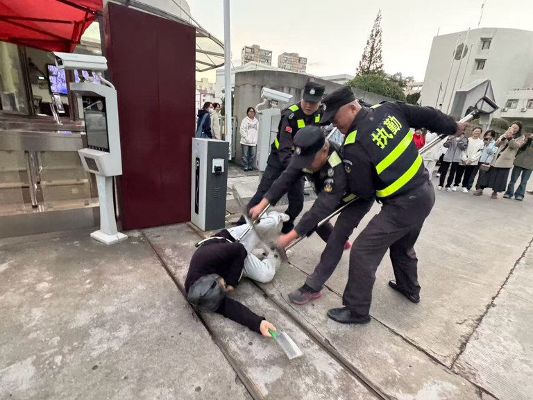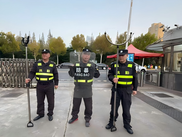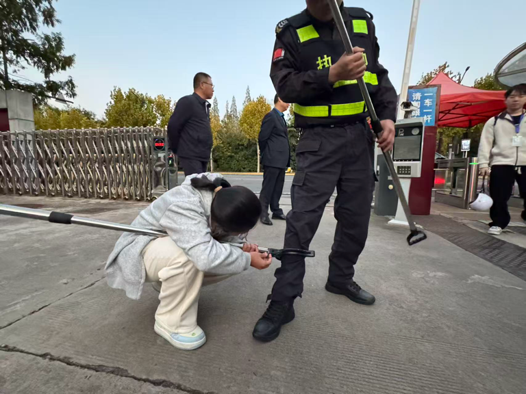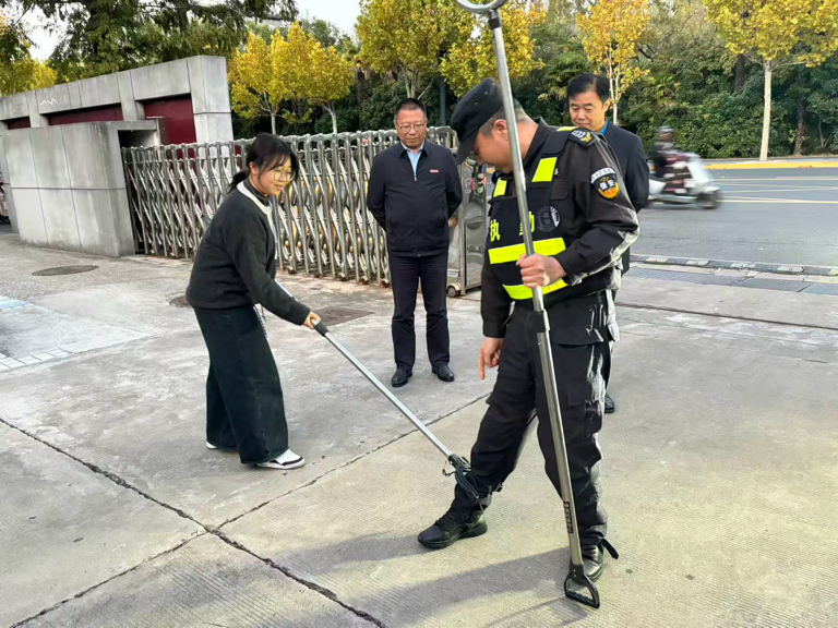 防暴演练环节高度模拟真实场景。由工作人员扮演的“模拟暴徒”突然发起袭击,现场演示了防暴盾牌、锁脚器等器材的实战用法——或持盾牌抵护胸部阻隔冲击,或用器械控制暴徒腿脚限制行动。师生们在安保团队的专业指导下,分组进行实操,学习避险躲闪、协同防护等核心技巧。整个过程组织严密、反应迅速,有效提升了师生在突发暴力事件中的自我保护意识和应急应对能力。