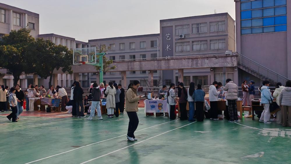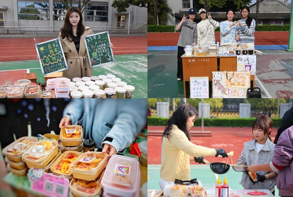 操场上,各班摊位整齐排布、创意满满,别致的装饰搭配轻快的音乐旋律,欢声笑语不绝于耳。从特色风味到手作小点,食材新鲜实在,制作用心细致,每一份美食里都藏着同学们的巧思和诚意。